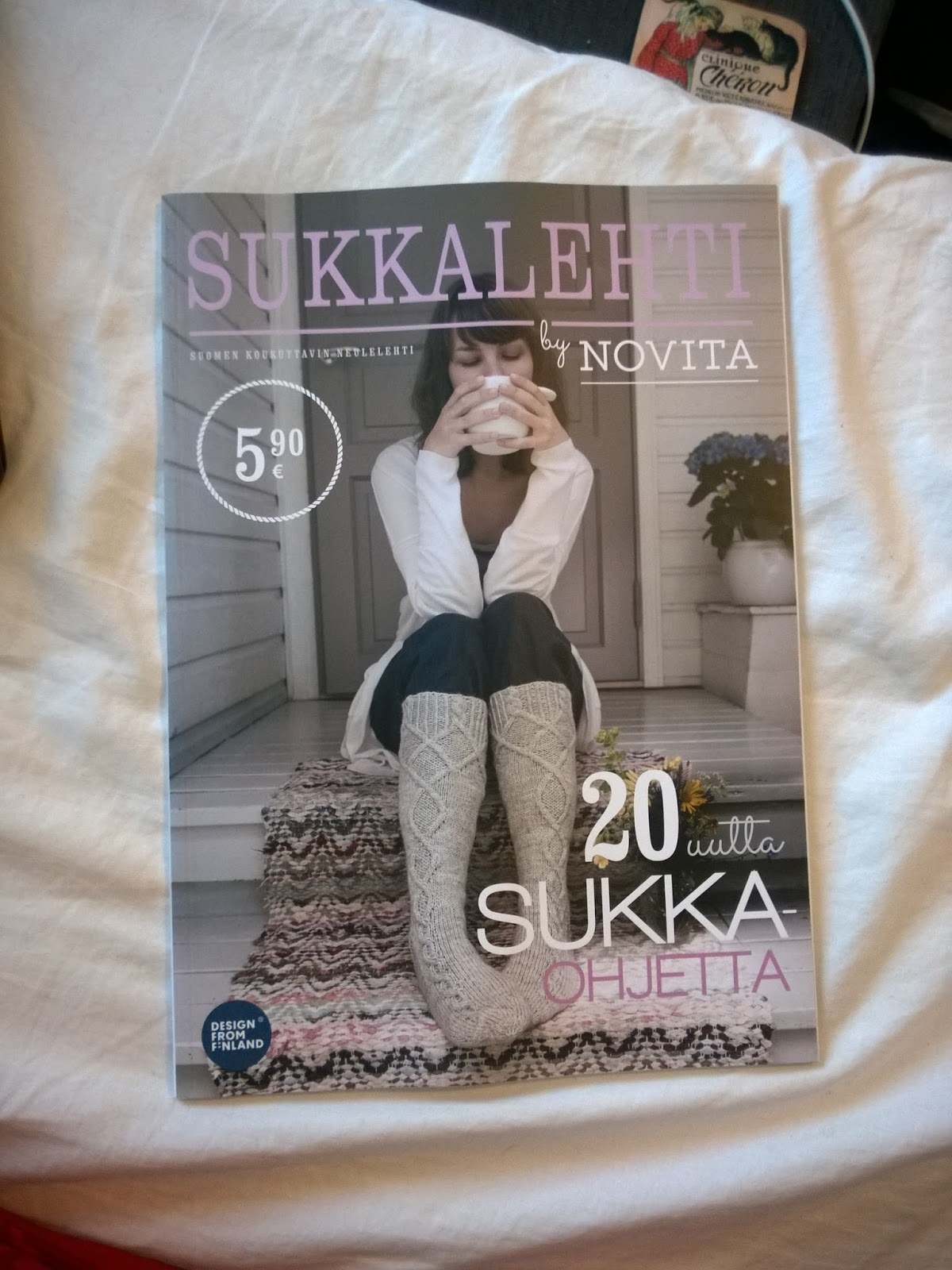 Kuten voi näppärästi nähdä, jos ohjetta kävi vilkaisemassa, olen muokannut sitä omiin tarpeisiini. Ajattelin sukkaa sovitellessani ja sen tiukkuutta ja joustamattomuutta kauhistellessani, että nyt ei ole se hetki kun lähden tekemään sitä kantapäätä joka mallissa oli. Joten tein ristiinvahvennetun ranskalaisen, ja tavastani poiketen kiilakavennukset joka toisella kerroksella - juurikin joustamattomuuden takia. Virheitähän sukissa vilisee lukuisia, mutta koska olen niin noviisi kirjoneuleen kanssa muutenkin, en todellakaan jaksanut lähteä pitkiä matkoja purkamaan. Pisin taisi olla pari puikkoa taaksepäin ja jo siinä meinas mennä langat niin tuhannen solmuun ettei tosikaan. Mutta olen ylpeä itsestäni. Onhan jälki suttuista, mutta monin kerroin parempaa kuin niissä surullisissa pöllölapasissa jotka yritin tehdä alkuvuodesta. Kaikin puolin kamalat :D. Ja nyt ehkä vois houkuttaa taas näitäkin tikutella, kun näin kuinka pitkällä tää eka sukka on. Käy kohta niin, että käsiala muuttuu aaaivan tyystin, ja ne on lopulta ihan eriparia.